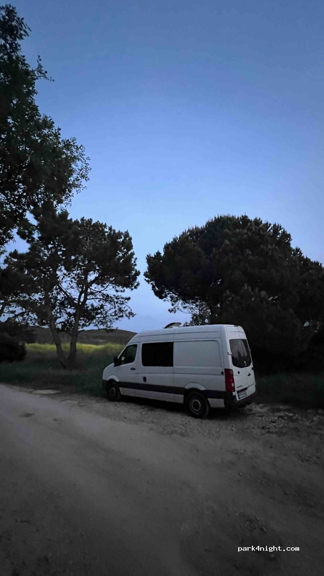 1 / 2Petit emplacement pour un Van ou plus petit. 6 m ou moins. Route de gravier assez solide. Vous devez vous rendre au plus grand parking de l'observatoire des oiseaux, puis tourner directement à droite. Plus bas, il y a aussi un endroit directement au bord du lagon. Certains locaux y ont même installé leur tente sur le toit, mais j'ai préféré l'endroit caché ici. Faire demi-tour peut être un peu serré selon les marées.