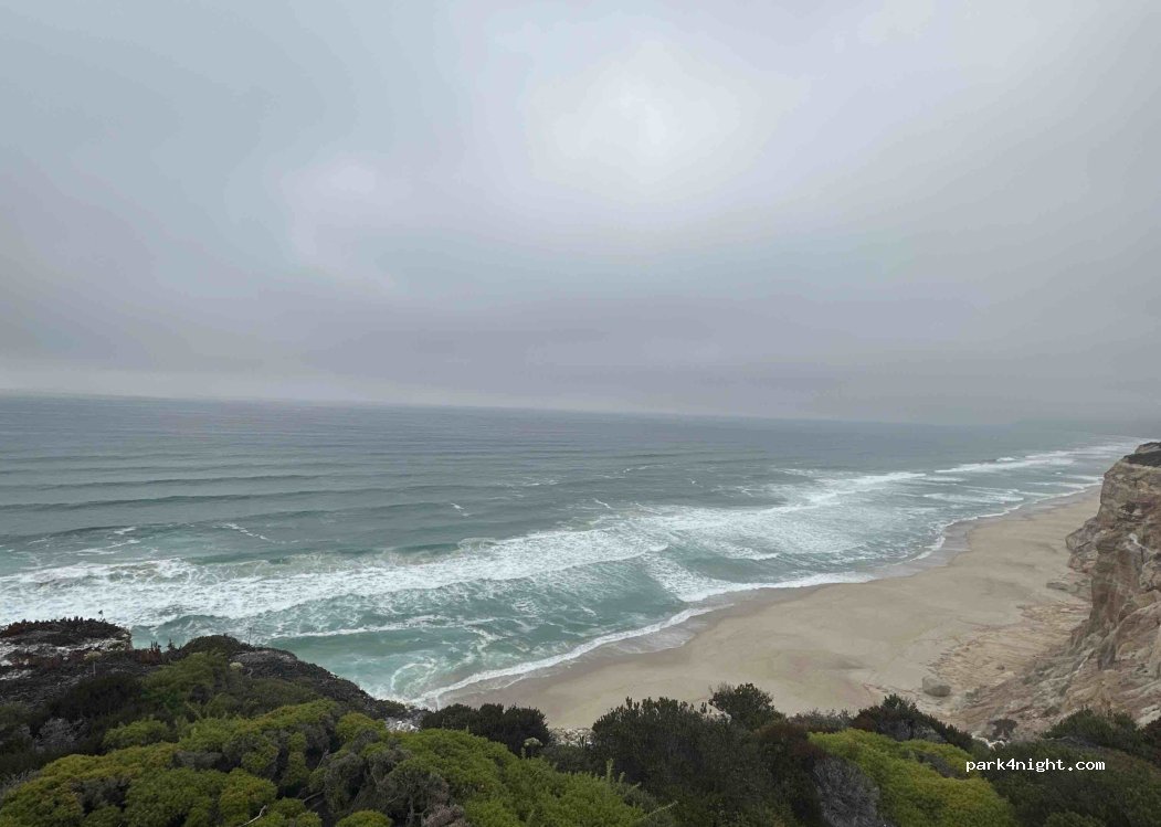 1 / 4Vue imprenable sur la mer depuis les falaises. Attention : ne vous y rendez pas sans 4x4 et barrière, et mieux vaut vous défouler ! Vous y serez certainement seul, mais la route est très sablonneuse, raide et parfois déroutante. Nous avons emprunté un itinéraire différent de celui de l'aller. Une certaine expérience du tout-terrain est requise, mais votre courage sera récompensé.