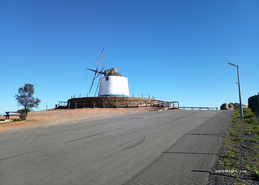 1 / 3Aménagement pique-nique autour d'un vieux moulin et d'un panorama sur la ville d'Ajustrel où l'on vois d'ailleurs l'autre spot vers le sanctuaire juste en face et la mine de l'autre côté. Aucun autre service si ce n'est les tables/bancs. Aucune restriction de stationnement ou de circulation. Accès raide et étroit sur les 300 dernier mètres, mais pas plus qu'au sanctuaire juste en face, réalisable sans soucis avec un 3.5t