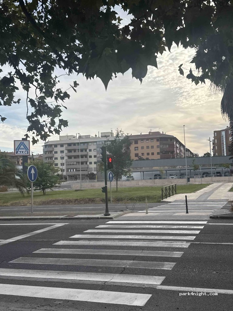 1 / 3Parking à côté de la station-service Moeve. Juste assez de place pour se reposer et poursuivre son voyage ou passer la nuit. C'est en périphérie de la ville. Il y a un supermarché ALDI de l'autre côté de la rue.