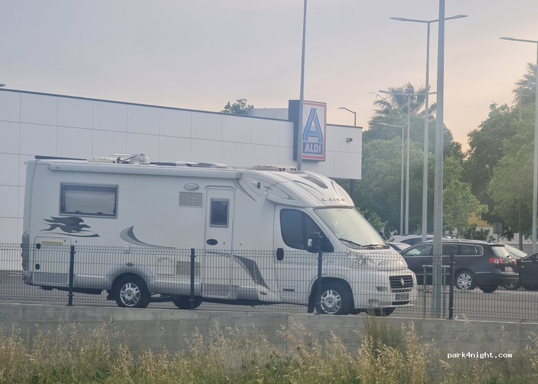 Parking du supermarché Aldi. Facile pour se garer, acheter et se rendre à l'exposition de moutons dans la région d'OVIBEJA.