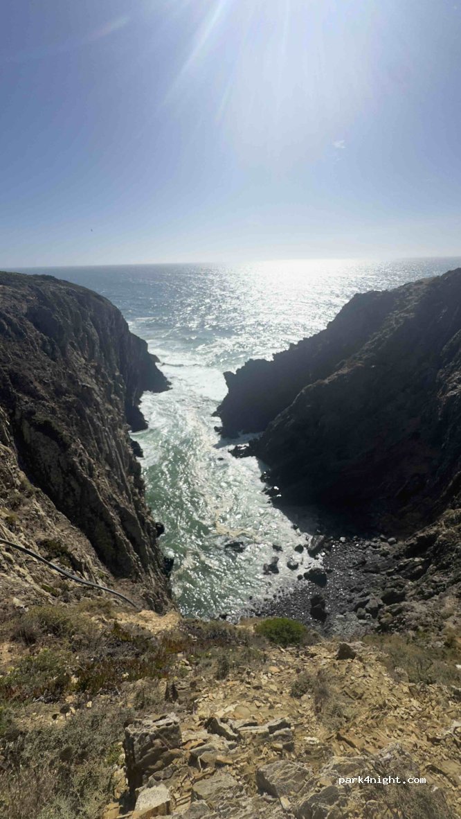 1 / 2À partir de là, ce serait du 4x4 tout-terrain. Nous sommes arrivés à midi, avons mangé et avons marché tout l'après-midi. Nous n'avons pas dormi, car nous allions le faire à Porto das Barcas. Peut-être aurions-nous dormi, même si des panneaux interdisaient l'accès à notre groupe dans cette ville/ce parking !