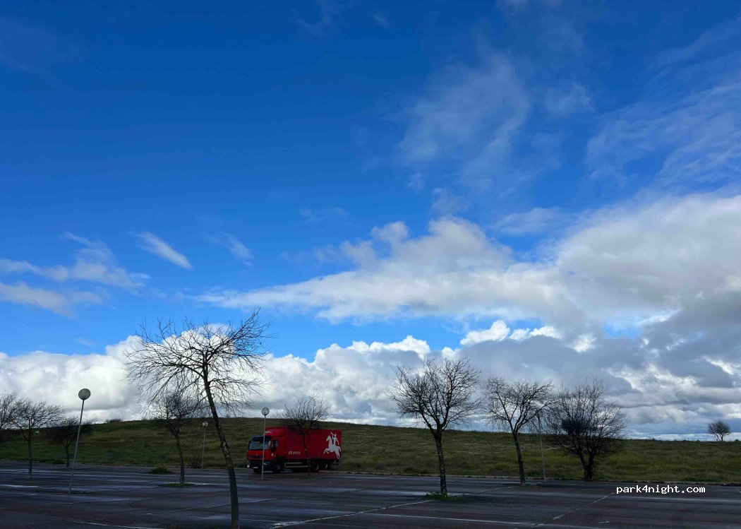 Nous dormons ici pour 2 nuits avec d'autres caravanes, un endroit très tranquille et amplement avec de nombreuses places d'appartement