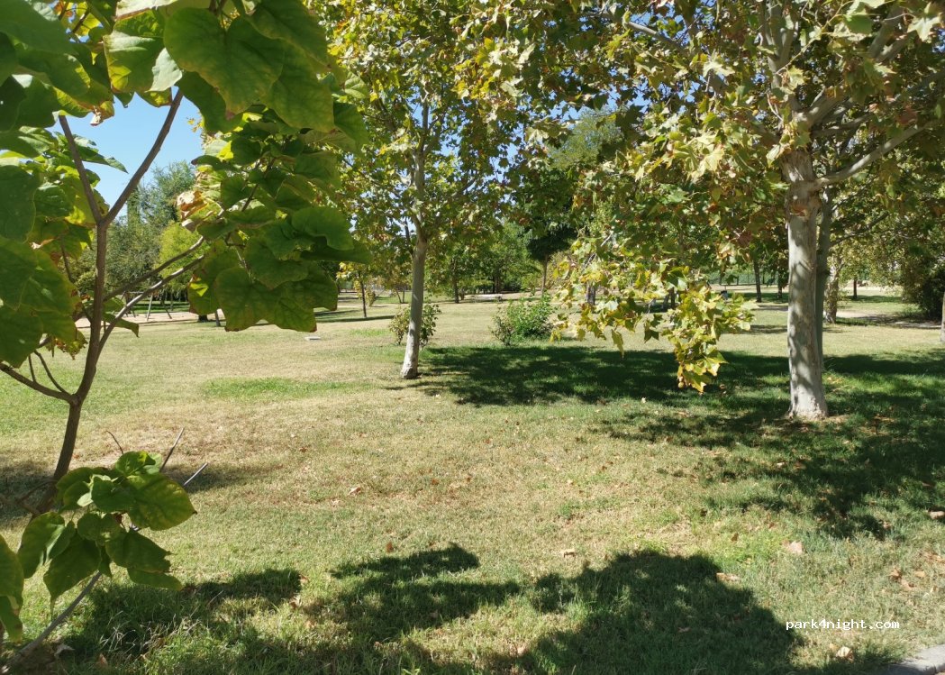 1 / 2Place en urbanisation devant un parc avec bancs et ombres
