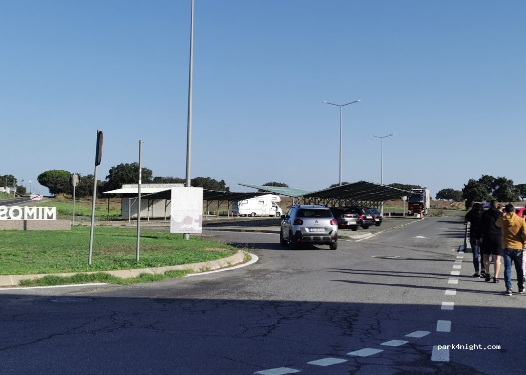 1 / 4Parking plus grand où stationnent également les camions pour la nuit. Restaurants et garage à proximité. Pas d'ombre.