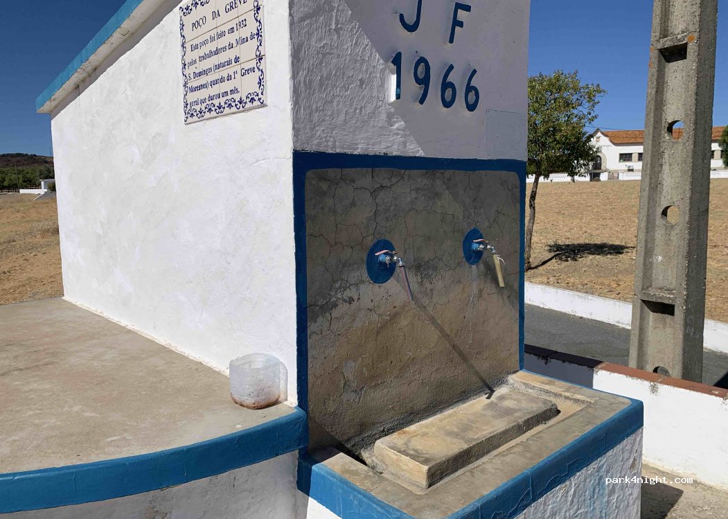 1 / 4Point d'eau avec deux robinets filetés. Chemin étroit après la fontaine, également bordé d'arbres bas ; pour revenir en arrière, faire marche arrière jusqu'à la rue précédente.