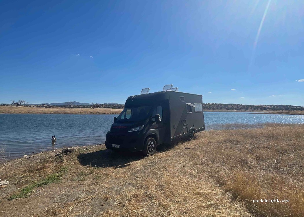 1 / 4Lieu au bord du lac littéralement. Très facile d’accès par une piste carrossable en bonne état. Presque plat et possible pour les grands cc le notre fait 7m. Pas d’ombre à cette période mais de nombreux petits arbres peuvent faire l’affaire pour des petits vans. Le réseau internet est très correct. Mais de laisser les lieux propres en partant d’ici.