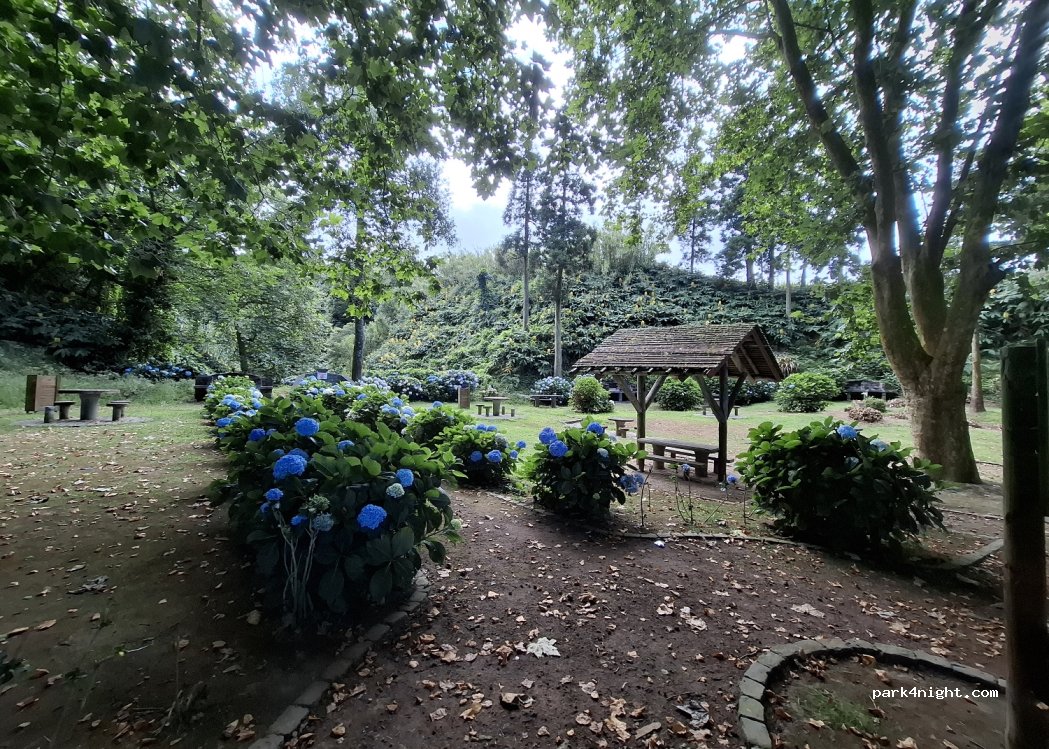 1 / 2Très joli aire de pique-nique avec de nombreux barbecues, entouré d hortensias